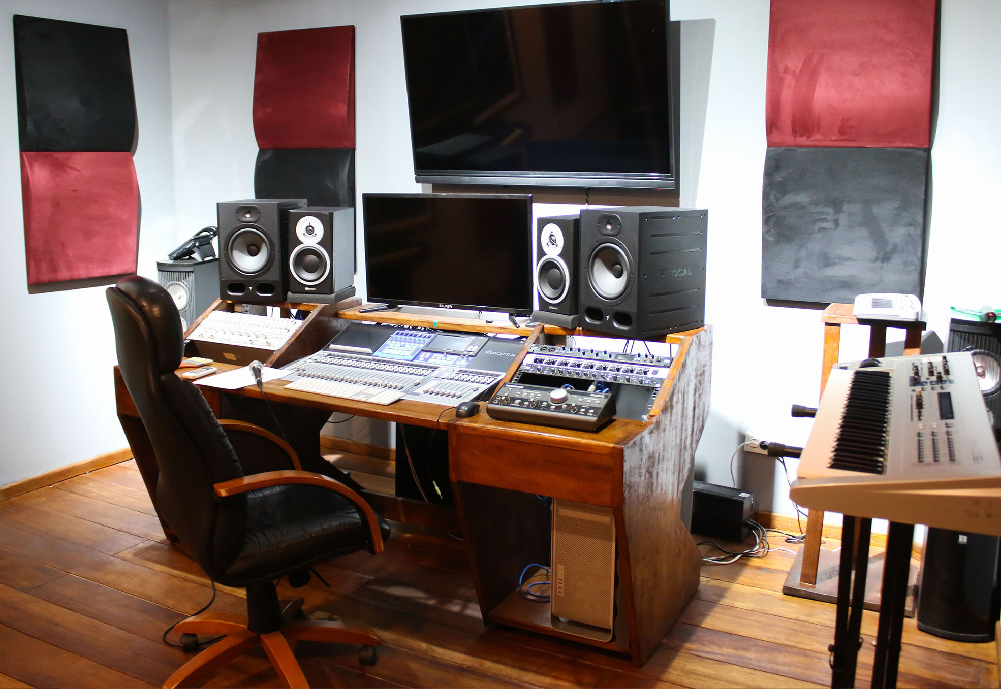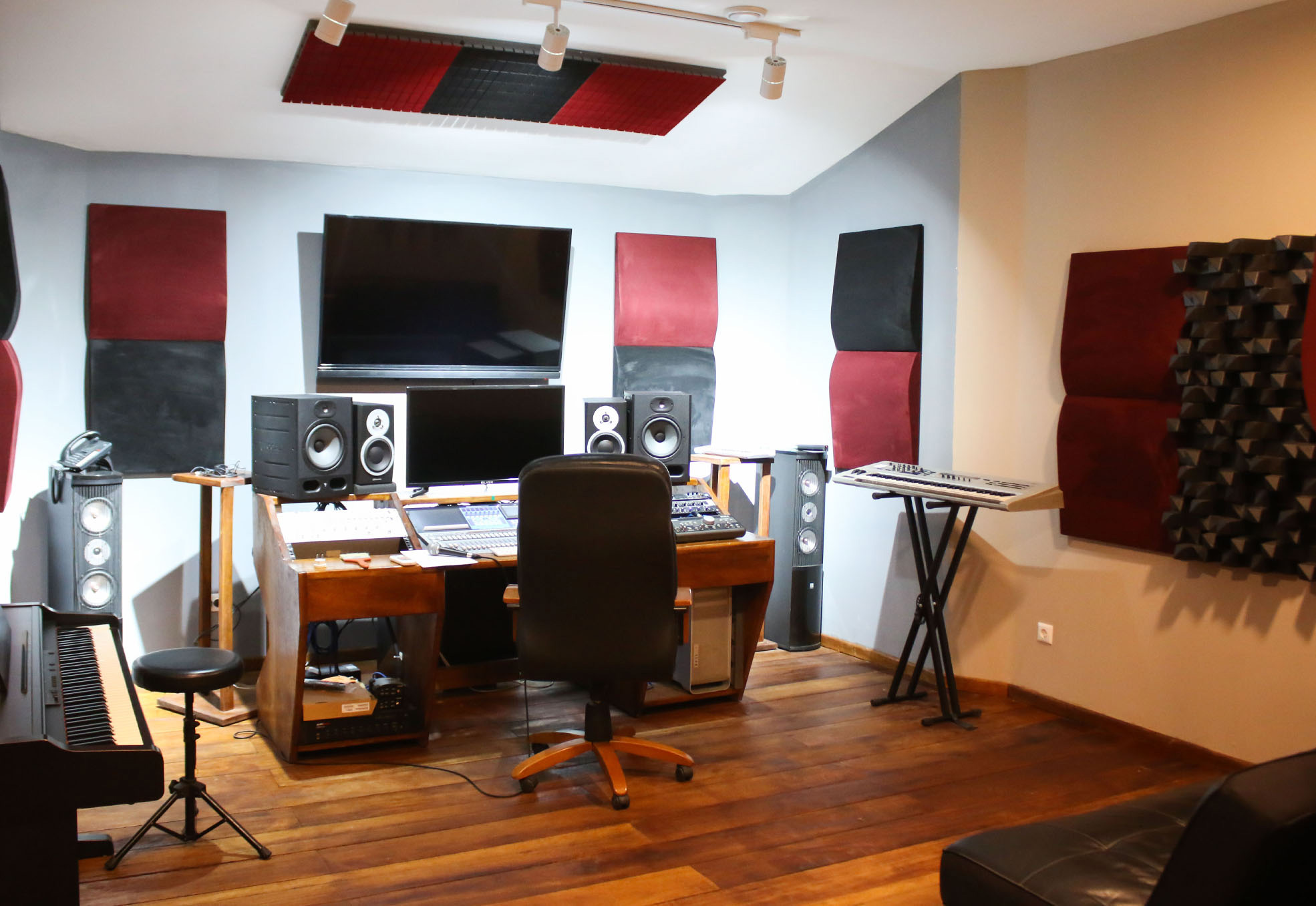 Estúdio com padrões de exigência internacionais, com capacidade de mistura, masterização, gravação de cantos corais e bandas completas (Live), spots comerciais, etc.